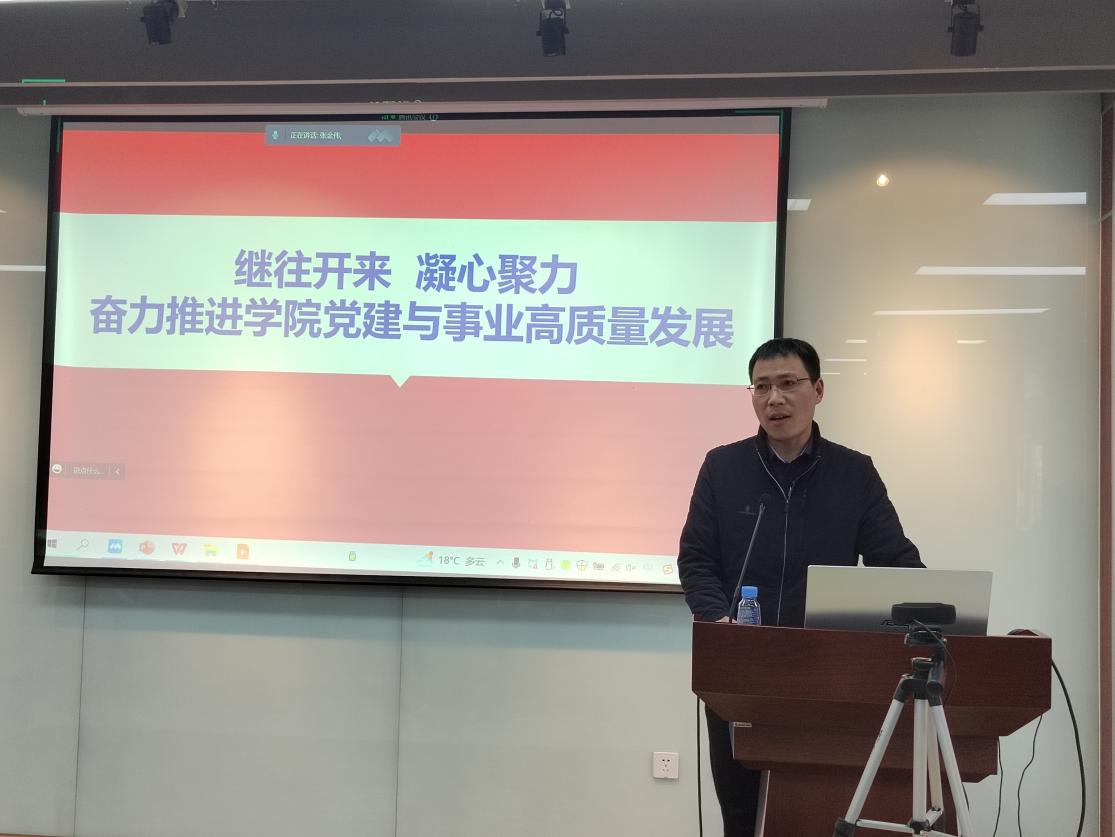 首先,李天富书记向全院教职工传达了学校2023年度新学期工作布置会暨“双代会”会议精神。2022年,学校坚持以习近平新时代中国特色社会主义思想为指导,深入学习贯彻党的二十大精神,按照学校既定目标,更加突出培养一流人才、服务国家需求、争创世界一流的导向,高质量推进学校党的建设和“双一流”建设。2023年,学校重点抓好学习贯彻习近平新时代中国特色社会主义思想和党的二十大精神,全面落实立德树人根本任务,大力实施人才强校核心战略,着力提高学科建设和科研创新质量水平,加大力度深化校地合作,加强高端国际交流合作,持续提升学校治理水平,全面加强党的全面领导等八个方面工作,集中精力办好川大发展的事情,奋力谱写高等教育现代化的川大篇章。
