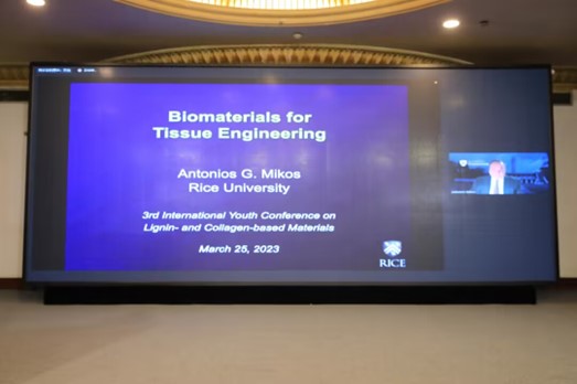 来自美国的Arthur Ragauskas教授、ANTONIONS G.Mikos教授分别做了题为《From Energy Resource to Value Added Feedstock》和《Biomaterials for tissue engineering》的主题报告,对各自研究领域的木质素基生物质材料研究进展和应用进行了详细介绍。