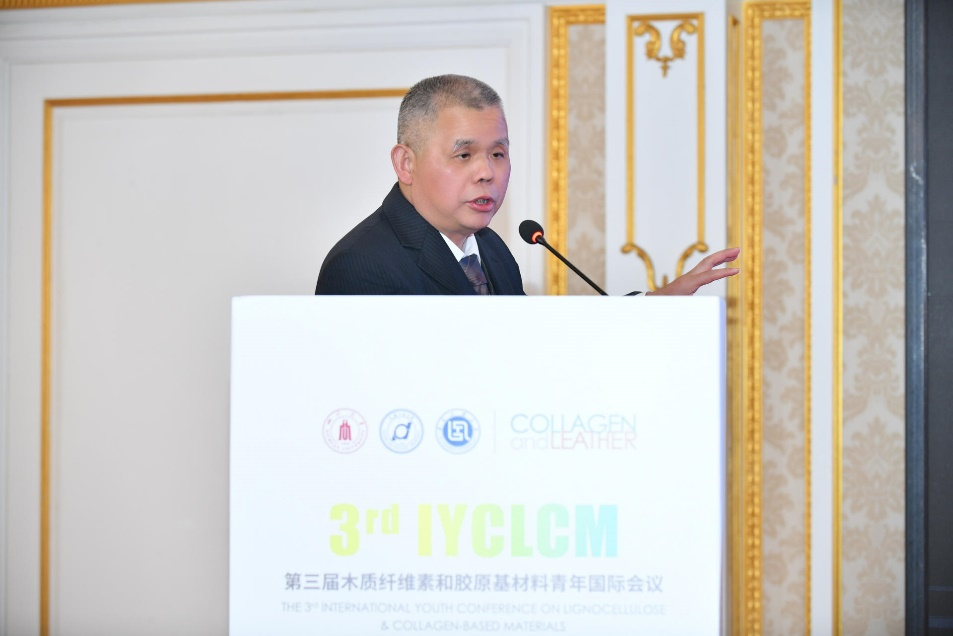 首先,大连工业大学孙润仓教授做了题为《木质纤维生物质高值产业化利用》的主题报告。四十余年来,孙教授一直从事于生物质转化为新材料、新能源及化学品方面的研究。本次报告孙教授阐明木质纤维生物质三大组分纤维素、半纤维素及木质素微区分布及结构特征的基础上,实现了三大组分清洁分离,重点致力基于水热耦合烯碱处理的生物质精炼技术及工程应用,并介绍了团队在木质素基纤维生物质高值产业化方面的应用案例。