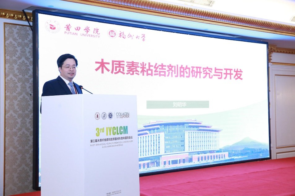 福建农林大学帅李教授长期从事林木生物质定向催化转化的研究,作了题为《缩合木质素的定向解聚和改性及木质素基胶黏剂的制备》的报告。帅教授向与会人员介绍了一种全木质素基的胶黏剂制备方法,所制备的胶黏剂无论在固化温度、固化时间以及机械性能方面均优于脲醛树脂胶黏剂,各项指标与酚醛树脂胶黏剂持平,其甲醛释放量达到E0级,优于酚醛树脂的E1级和脲醛树脂的E2级。