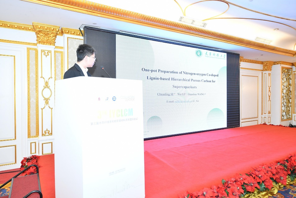天津科技大学司传领教授做了题为《One-pot preparation of nitrogen-oxygen co-doped lignin-based hierarchical porous carbon for supercapacitors》的报告。司教授制备了具有分级孔隙结构的二维木质素基碳纳米片(N-LHPC)并将此可持续资源木质素与三聚氰胺和金属氯化物结合,成功实现了氮掺杂和原位嵌入碳基体的MgO模板。