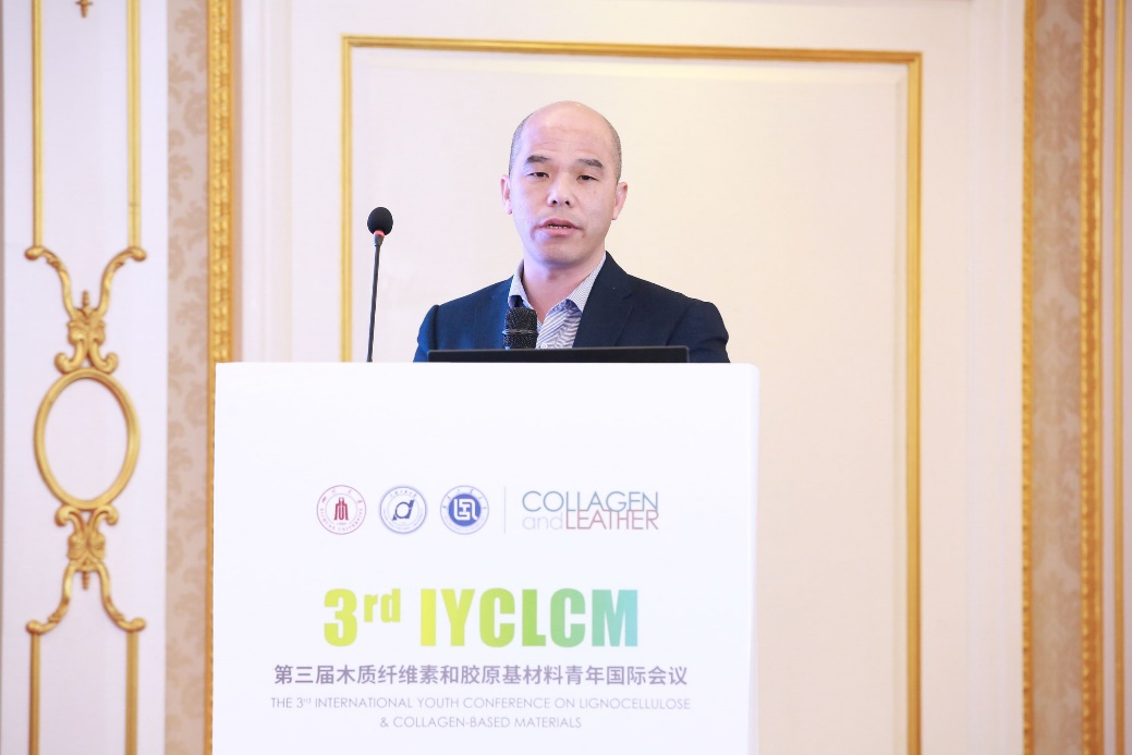 陕西科技大学陆赵情教授做了题为《差别化合成纤维制备及其系列纸基功能材料》的报告。陆教授长期致力于高性能纤维及纸基功能材料、造纸新技术领域研发,他的研究基于传统植物纤维纸张存在的局限,着眼高性能纤维及功能材料研究,介绍了芳纶浆粕纤维以芳纶布边角料为原料通过化学润涨和造纸专用设备实现制备的新技术,在芳纶纸基功能材料方面实现突破。