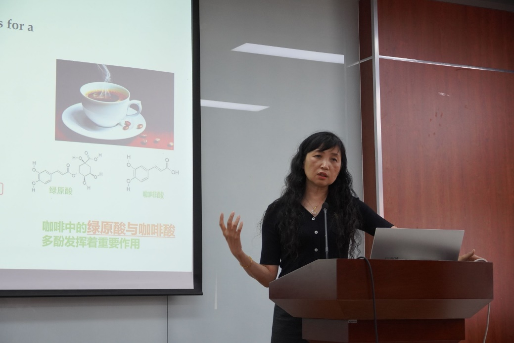 孙群教授作题为“肌原纤维蛋白与绿原酸复合物通过肠道微生物对二型糖尿病大鼠的血糖调节作用”的报告。