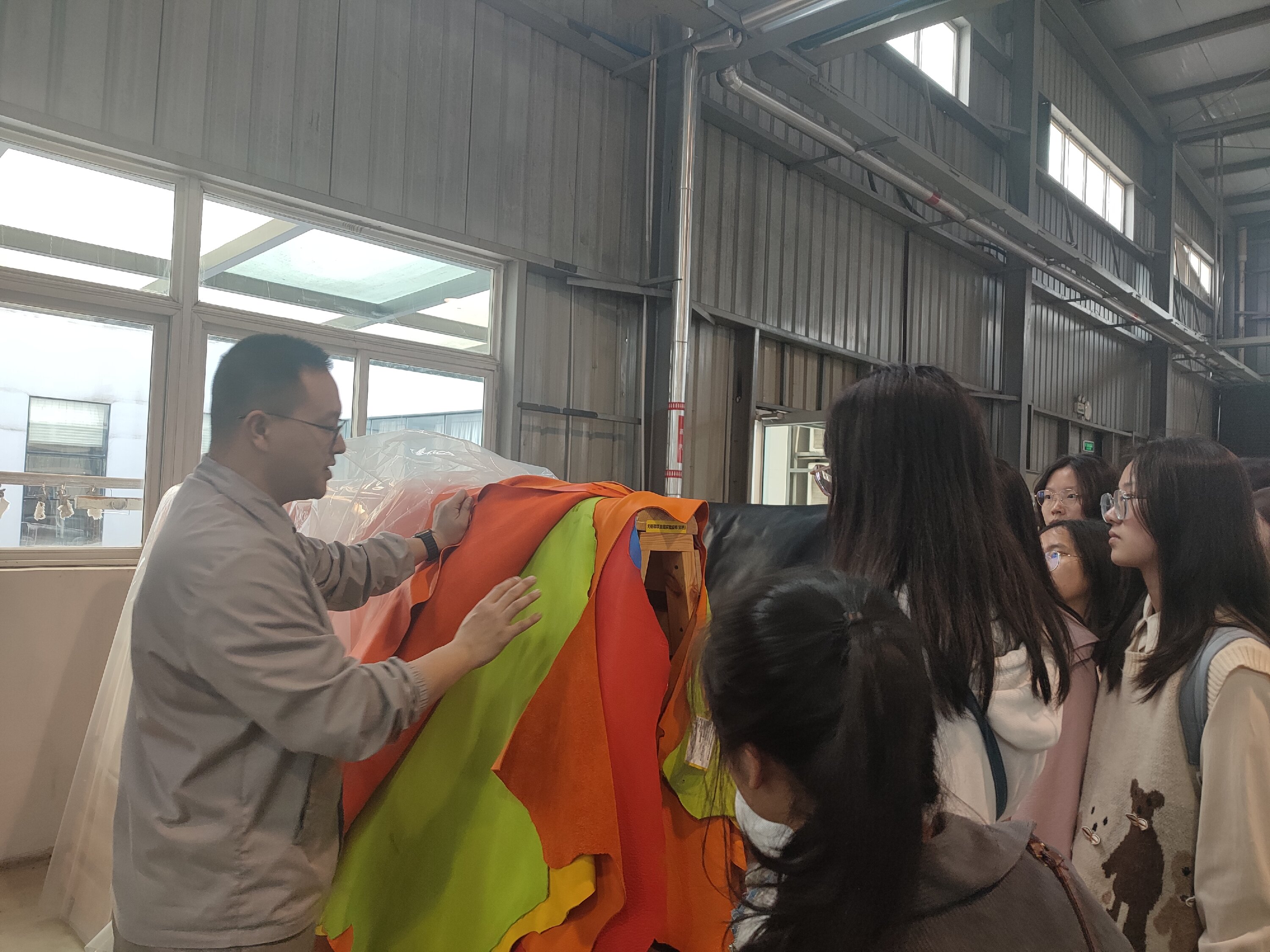 院长彭必雨教授首先对德赛尔公司的热情接待表示了衷心的感谢,强调了开展此次认知实习的重要意义,并对参会同学们提出了殷切寄语,希望同学们进入大学校园后尽快适应身份转变,借此宝贵的访学交流机会对未来的职业生涯有所规划。德赛尔公司副总经理尹焕兵先生为同学们详细介绍了皮革行业人才需求和行业发展,以及德赛尔公司的整体情况,让同学们对皮革行业与德赛尔公司的定位有了直观而深入的了解。同时也希望同学们有经得住考验的决心和毅力,择一事,从一生,皮革行业大有可为。