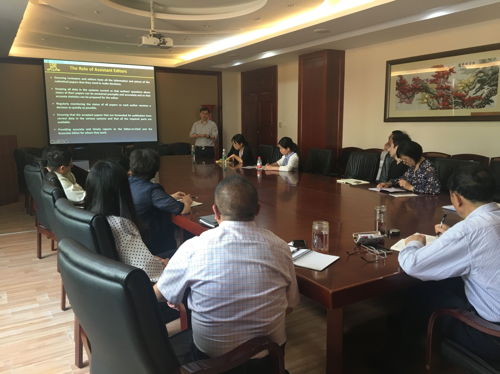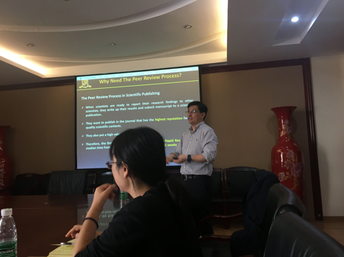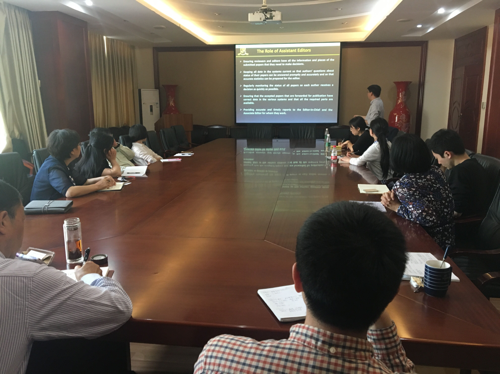 应四川大学轻纺与食品DB游戏 和《皮革科学与工程》杂志社邀请,香港中文大学化学系魏涛教授(Prof. To Ngai)于2018年4月4日到DB游戏 进行学术交流,并就杂志社英文期刊创刊事宜与编辑部及相关老师座谈,做了一场题为“Managing a High Reputation Journal: Aperspective from A Scientific Researcher”的精彩报告。座谈会由生物质与皮革工程系系主任林炜教授主持,轻纺与食品DB游戏 院长何有节教授介绍了魏涛教授的研究工作经历并致欢迎词。会上魏涛教授主要分享了他在担任ACS旗下期刊Macromolecules主编(吴奇教授)助理(Assistant Editor)工作两年期间,有关审稿过程管理、编辑部主要成员职责以及怎样提高期刊的学术声誉等方面的经验;并从一位研究学者的角度对如何创办一个高水平且有持续发展活力的英文学术期刊提出了自己的建议和看法。《皮革科学与工程》杂志社社长陈武勇教授、编辑部陈玲主任、陈慧副教授、王亚楠副教授等老师就英文期刊在创办工作及与国外出版公司合作中可能遇到的问题与魏教授进行了比较深入的讨论和交流,探讨了一些可操作性较强的应对措施。 魏涛:博士(PhD)、香港中文大学化学系教授。魏涛教授于1999年以一等荣誉毕业于香港中文大学化学系,之后师从吴奇院士攻读博士学位,于2003年获香港中文大学化学系化学博士学位;2003年-2005年在德国巴斯夫公司任职,2005年7-12月在美国明尼苏达大学做博士后研究;2006年1月起在香港中文大学任教,且在2006年1月-2008年1月期间担任高分子学科Macromolecules的副主编助理。2008年被聘为香港中文大学化学系助理教授,并于2012年和2017年分别晋升为副教授和教授。他的主要研究领域包括:高分子、胶体、软物质的设计和合成及其相互作用表征、纳米粒子合成与自组装、自组装理论与方法研究等。魏涛教授近年来在Angewandte Chemie、 Internationnal Edition、Macromole-cules、Soft Matter、Langmuir等国际核心学术期刊发表论文100余篇。