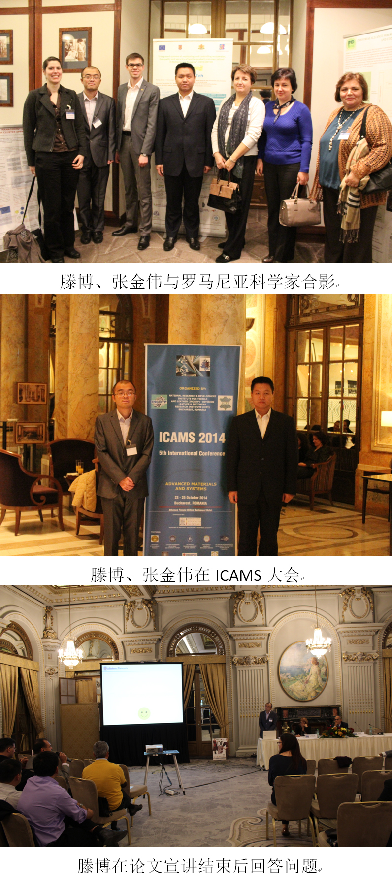 陈武勇教授课题组博士研究生滕博,硕士研究生张金伟参加了由罗马尼亚国家皮革与纺织品发展研究院、布加勒斯特制革与制鞋研究中心以及罗马尼亚教育部主办的第五届先进材料与系统国际会议(5thICAMS)。并以大会宣讲及海报展示的方式展出研究论文4篇。