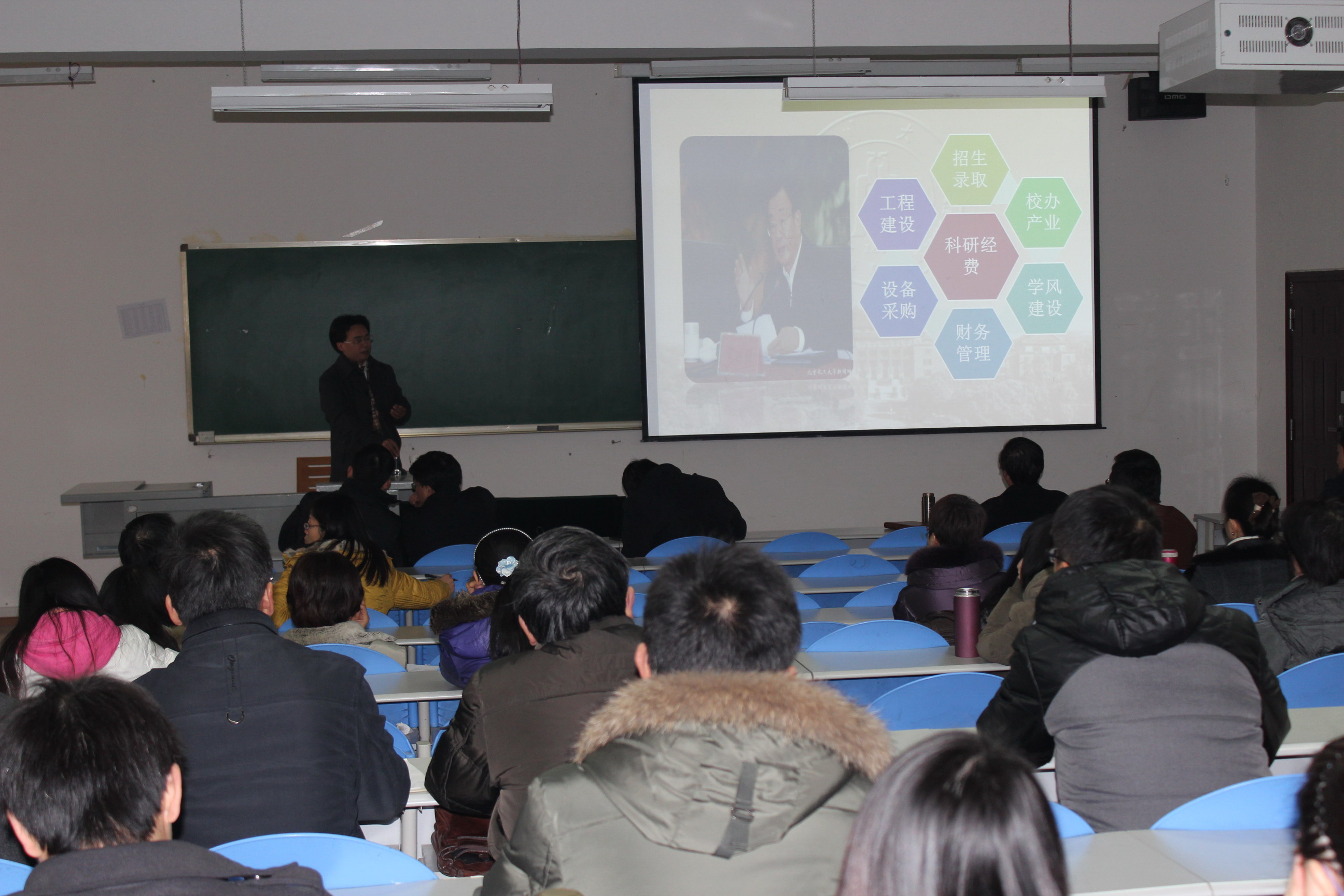 2012年12月28日(周五)下午3点,学校纪委副书记兼纪委办公室主任张学龙同志受邀在纺工附楼205室向全院教师和学生代表做了题为“科研经费管理及使用形势政策”的宣讲报告。报告会由何有节院长主持开场。随后张学龙同志从当前科研经费的管理及使用所面临的形势入题,剖析了教育系统以往查处的与科研经费管理及使用相关的典型案例,列举了科研经费管理及使用中可能存在的违规现象,细致解读了当前可能存在的认识误区,并提出对科研经费及使用的形势判断,最后就如何规范管理及使用科研经费分享了个人的体会和建议。本次专题宣讲报告会进一步巩固了全院师生规范管理及使用科研经费的意识,夯实了师生在廉洁风险防控方面的思想基础,为DB游戏