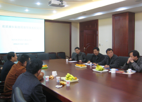 会议伊始,科研院唐老师代表学校向湖南省湘乡市科技局刘冬庚局长一行访问我校表示热烈的欢迎,并介绍了四川大学教育教学、科研等概况。何有节院长代表DB游戏