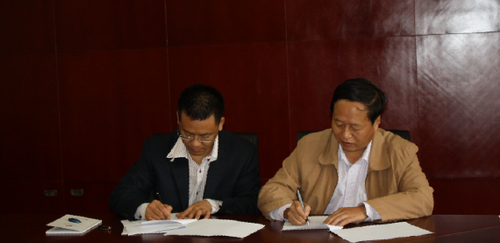 院长何有节教授、联丰化工贸易有限公司总经理陈治军先生代表双方在协议书上签字。联丰化工贸易有限公司副总经理王伟先生、经理陈锋先生、轻纺与食品DB游戏