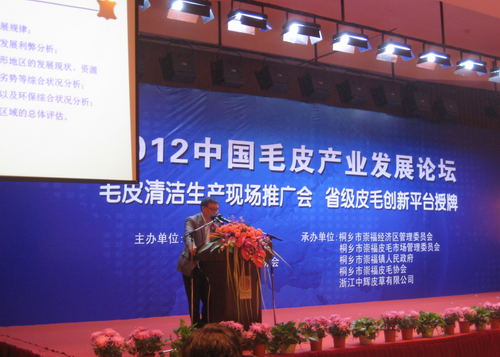 生物质与皮革工程系副主任张宗才教授等参加了相关的活动。本次活动由中国皮革协会、浙江省皮革行业协会、桐乡市人民政府主办,崇福经济区技术管理委员会、桐乡市崇福镇人民政府、桐乡市崇福皮毛协会、浙江中辉集团承办。来自全国知名高校,各地皮草知名企业,业内外新闻媒体等单位的代表约80余人参加了本次活动。
