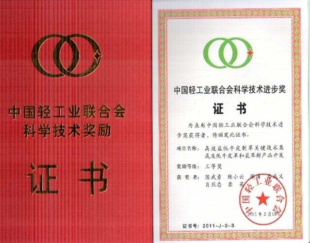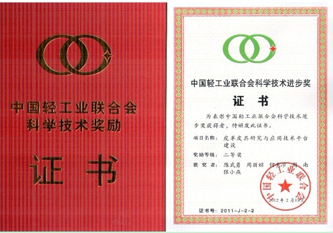 有两个项目获奖:一是由四川大学和广东省狮岭皮革皮具产业研究中心完成的项目“皮革皮具研究与应用技术平台建设”,因提升轻工行业科学技术水平并产生显著的社会效益而荣获中国轻工业联合会科学技术进步二等奖。获奖者:陈武勇,周丽嫦,何有节,周南,张小燕;二是由四川大学和西藏自治区拉萨皮革厂完成的项目“高效益牦牛皮制革关键技术集成及牦牛皮革和裘革新产品开发”因促进社会经济发展而荣获中国轻工业联合会科学技术进步三等奖。获奖者:陈武勇,陈小云,张涛,马成义,肖烈忠,龚英。