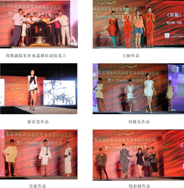 2012年6月11日晚8时,时尚创意发布基地启动挂牌仪式暨e-Fashion时尚电商首秀在成都东区音乐公园成都大舞台举行。本次服装发布会精选展出了来自四川大学、四川师范大学、成都纺织高等专科学校和四川国际标榜职业DB游戏