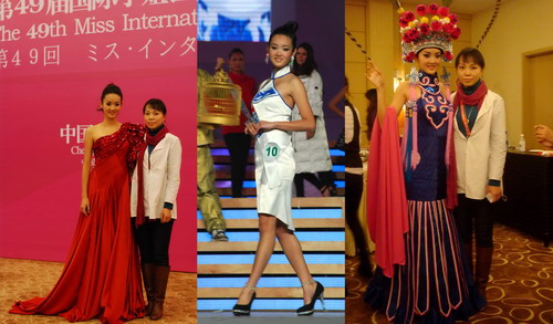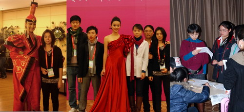 的时昱老师参与了作为世界三大选美盛典之一,号称“选美中的奥林匹克”的第49届国际小姐世界大会总决赛的服装统筹设计工作,其作品太阳神鸟青花旗袍作为66个国家佳丽的颁奖礼服出现在绚丽而充满成都元素的国际小姐总决赛的舞台上(图1)。决赛最后环节,在成都老茶馆特有的“茶博士”带领下,66个佳丽身着寓意金沙文化的白底青花纹样的旗袍造型再次登场,风姿卓越,款款盈动。此次的青花神鸟旗袍,分为四个不同款式,白色的主色调纯净安宁,加上古蜀文化中著名的金沙太阳神鸟图案,十分抢眼。由此,佳丽们所穿的青花神鸟旗袍也被定义为“成都式样”( 图2)。 除此以外,时昱老师还负责设计了中国小姐王芊的民族服装设计、泳装、晚装及青花旗袍设计(图3)。其中民族服装里,在结合王芊极具东方的气质基础上,注入了大量的中国元素,但又不失国际风采;凤仙领,中国蓝,如意纹样,西式裁剪与露肩礼服,大气的外观加上穆桂英扮相,给中国小姐王芊带来了飒爽英姿的戏剧造型及俏丽的色彩与装扮(图4、图5);晚装秀中,因为王芊的体型娇小,所以在服装设计中加以了大型的不对称荷叶灯笼袖设计,悬垂的皱褶与中国红把中国小姐王芊衬托得更具国际韵味(图6)… 时昱老师在本次活动中,从接到任务开始,经过构思、具体的工艺解决到最后的舞台展示,时间紧迫,工艺难度大,所有服装的整个设计与制作过程历时仅短短一个多月。当身着青花旗袍的冠军墨西哥小姐、亚军韩国小姐与季军英国小姐的合影被传向全球的时候,让所有辛苦的过程换成这值得纪念的瞬间(图7、图8)。 本次活动里,时昱老师还带领了一个服装专业的学生团队,除了以实践行为参与这样一个国际赛事以外,还让学生可以近距离观摩了解世界各国服装的风采与特殊工艺,以及较清晰感受这样的国际赛事的操作流程,让同学们也在本次活动的工作中有了极大的收获(图9)。作为66个国家颁奖服的4款青花旗袍将被收藏于轻纺与食品DB游戏