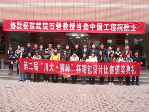 2009年12月8日下午16:30,第二届“川大·狮岭”杯箱包设计比赛颁奖典礼在皮革楼报告厅隆重举行。参加本次颁奖典礼的嘉宾有狮岭镇镇长徐伟新先生、镇纪委书记刘欢容女士、联合村书记冯金生先生、义山村村长钟志锋先生、司法所长邵庆銮先生、外管中心书记于伟成先生、自来水公司经理黄天湖先生以及狮岭镇皮革皮具产业研究中心博士后焦利敏女生、轻纺与食品DB游戏