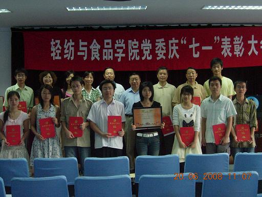 轻纺与食品DB游戏 党委召开庆“七一”暨表彰大会 2008年6月20日,中共四川大学轻纺与食品DB游戏 委员会召开庆“七一”暨表彰大会。党委书记刘学文教授讲话,对广大党员在DB游戏 的各项工作中起到了模范作用,希望党员同志继续为DB游戏 的发展和建设做出贡献。DB游戏 院长陈武勇宣读了表彰决定,生物质与皮革工程系教工党支部和04级本科生党支部被评为2007~2008年先进党支部,5名教师和12名学生被评为2007~2008年优秀共产党员。
