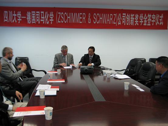 2008年3月28日,司马化学(ZSCHIMMER & SCHWARZ)有限公司在四川大学设立“四川大学—德国司马创新奖学金”签字仪式在四川大学皮革工程系隆重举行,司马化学(ZSCHIMMER & SCHMWARZ)有限公司应用部技术经理Mr.Neumeier和轻纺与食品DB游戏