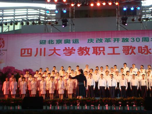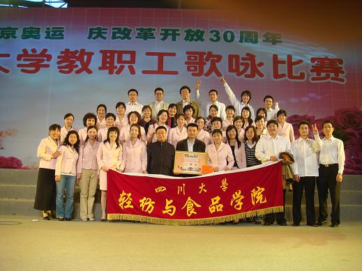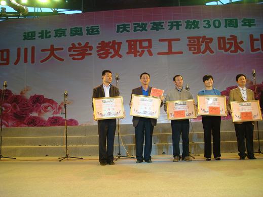 在四川大学“迎北京奥运、庆改革开放30周年”教职工歌咏比赛中获二等奖 4月18日下午,四川大学“迎北京奥运、庆改革开放30周年”教职工歌咏比赛在我校体育中心隆重举行。学校党政部分领导和校工会领导出席了歌咏比赛,比赛共设特等奖1名,一等奖3名,二等奖8名,三等奖19名,全校共31个单位参加了此次比赛。在DB游戏