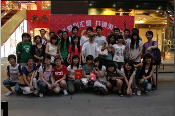 教师赵武、冯洁与川师的2名教师自发牵头组织,联系义卖场地、捐献省慈善总会等义卖活动相关事宜。 在5月22日周四的课堂上,当05级服装班的同学听到这次义卖活动需要筹集更多的美术作品时,立即积极响应,分组行动,承担起这次义卖活动的主力军,当晚即到江安校区组画,除了DB游戏