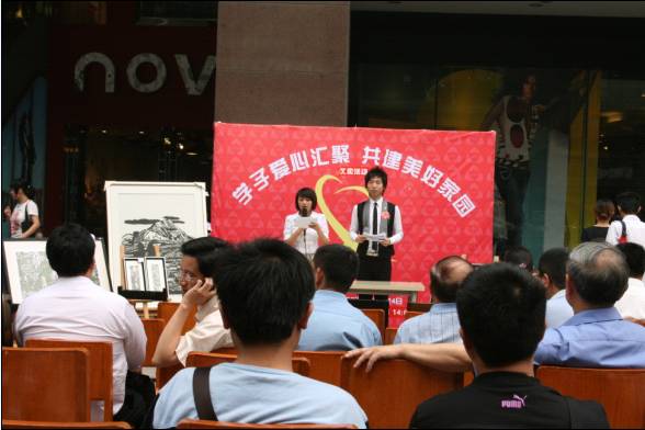 发起的“学子爱心汇聚 共建美好家园”艺术品义卖活动在春熙路第一城举行, 25日下午2时-5时举行了艺术珍品拍卖活动,本次活动筹备时间短,但在DB游戏