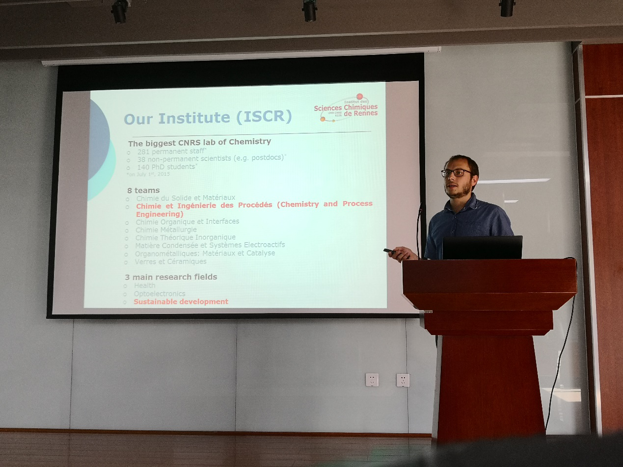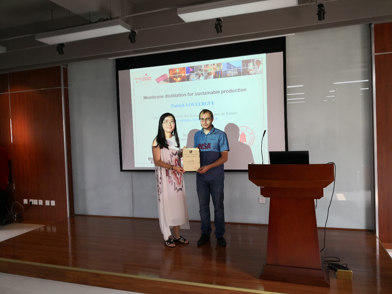 ,并在皮革系金垚副教授的主持下作了题为“Membrane distillation for sustainable production”的学术报告。这也是自今年5月开讲的“生物质科学与工程论坛”系列报告之一,该论坛的负责人杨璐铭老师特为Patrick Loulergue副教授颁发了相应证书。
