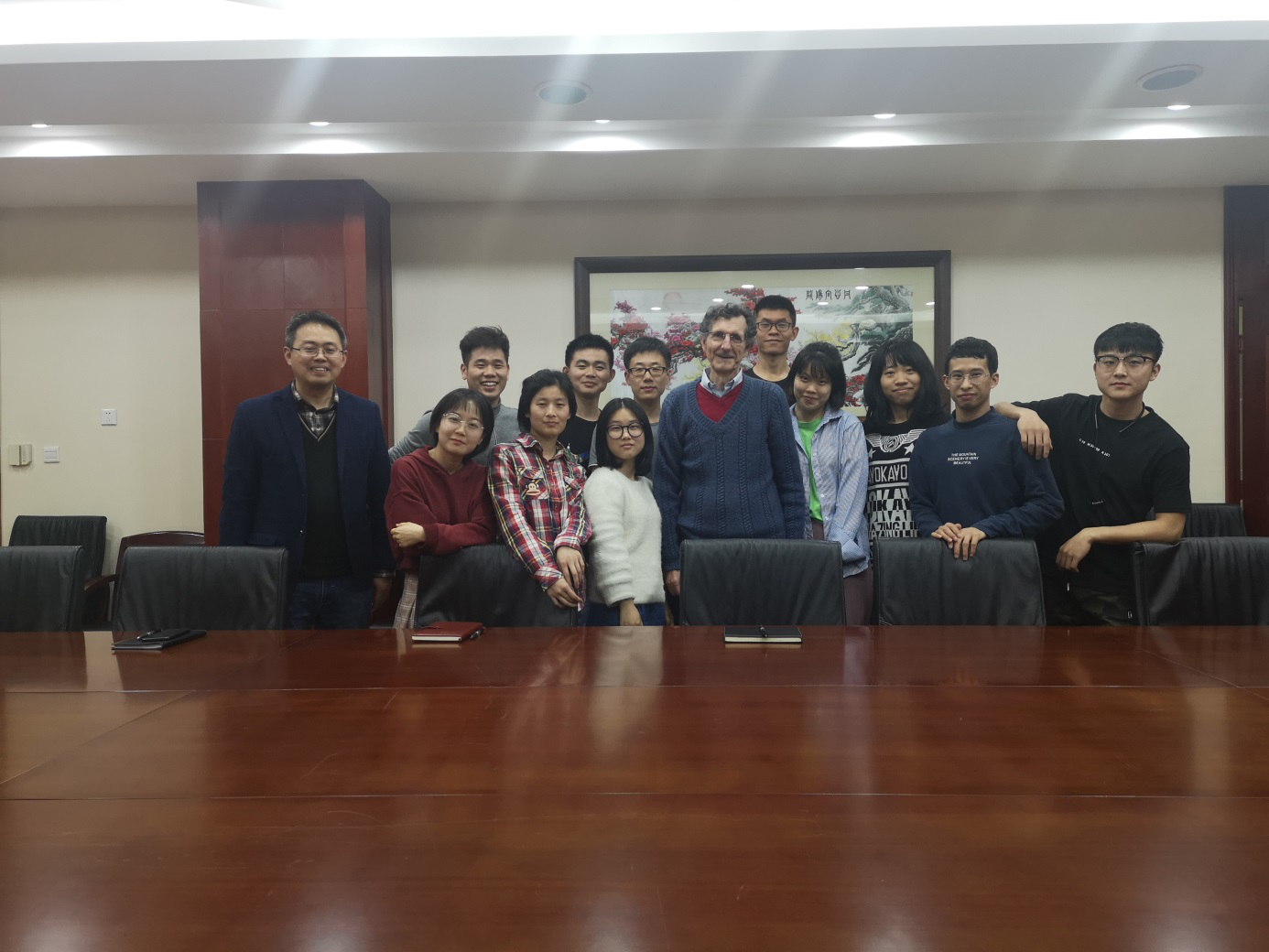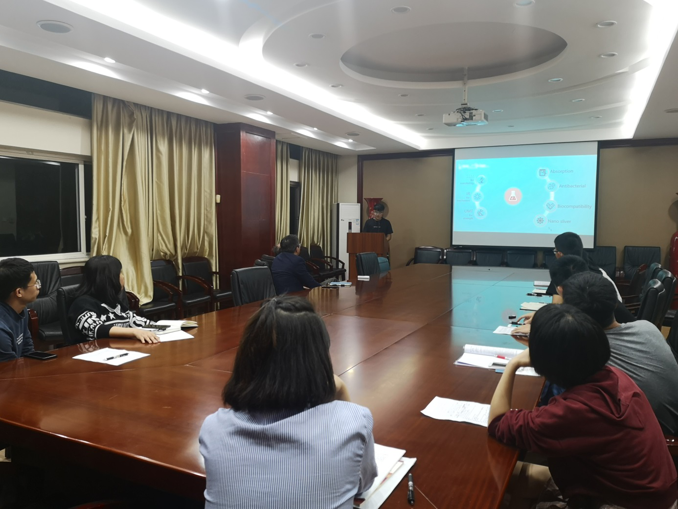 4名同学分别做了题为Preparation of ferrocenyl hydrogels(刘雄,2018级博士)、Preparation of gold nanoparticle hydrogels(龙燕茹,2017级硕士)、Research Progress of hydrogel(何恒曦,2018级硕士)、Preparation and properties of quaternary ammonium ferrocene-based polymers(凌强君,2015级本科生)的英语科研报告。Didier Astruct院士针对每位同学报告的内容仔细询问,提出非常宝贵的意见和建议,并与在座的老师和同学进行深入地探讨和交流。通过Didier Astruct院士的指导,同学们进一步厘清了各自研究课题的思路,认识到研究工作中存在不足,同时提高了科研的热情,开阔了国际视野,增强了国际合作意识,提升了英语口语表达水平,获益匪浅。