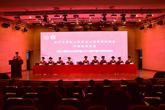 在主席台就坐的领导、教授为获得学位的全体2019届毕业生授位,并颁发了学位证书。