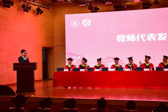 生物工程专业金垚副教授作为教师代表发言。金老师分享了自己的经历,希望同学们认真做好每一件小事,全力以赴对待生活,随时为自己还没准备好的事情准备着。也分享了自己看法,“未来有无限多种可能性,而年轻就是最大的资本,在任何尝试之前,请不要武断地下结论,撸起袖子干就好了”。