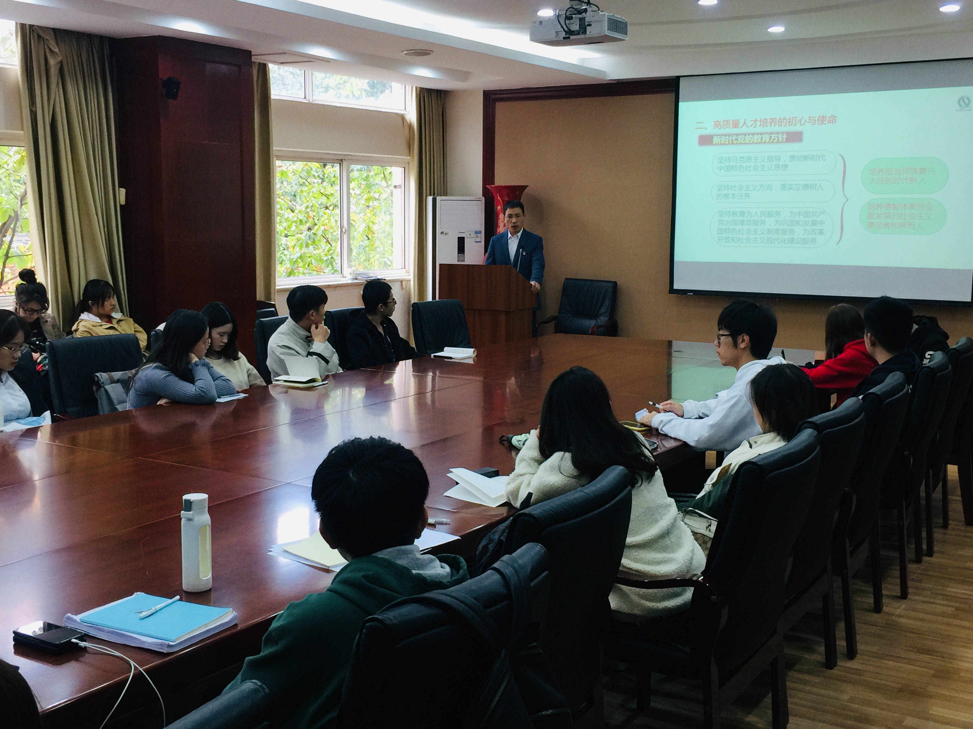随后,冯书记围绕高质量人才培养的初心与使命展开阐述,要求学生党员明确新时代党的教育方针是培养担当民族复兴大人的时代新人和培养德智体美劳全面发展的社会主义建设者和接班人,并对《深化本科教育教学改革相关意见》作了全面解读。冯书记还向学生党员介绍了DB游戏