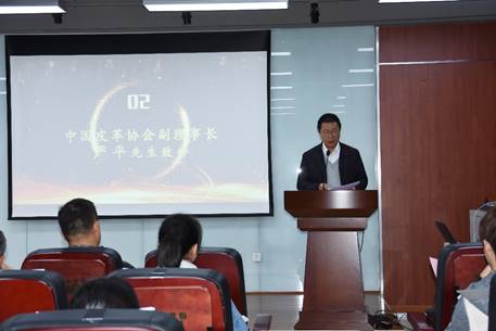 教育教学改革的关心与支持,感谢他们对川大学子的支持与鼓励,也对获奖同学表达了衷心的祝贺。林主任向各位嘉宾与同学详细介绍了生物质与皮革工程系近年来在教育教学、学科建设以及人才培养等方面所取得的成绩,并对获奖同学及全系同学提出了殷切期望。同时,设奖行业协会代表、中国皮革协会副理事长严平先生致辞。严理事长回顾了中国皮革协会奖学金设立的历史,欣慰的看到一代又一代皮革学子在热心人才培养的行业企业和协会资助和鼓励下学有所成、学有所用,在行业内大有所为,众多科技成果受到国际社会的关注与认可,成为行业发展的中坚力量。同时,严理事长也希望同学们继续勤奋学习、学有所获,为皮革行业的发展做出更大的贡献。之后,德国司马化工首席代表、皮革部中国区总经理张建华先生代表设奖企业讲话,张总经理首先介绍了司马化学公司百余年来的历史,作为一家百年老店,为皮革行业发展做出了积极的贡献。张总也为同学们回顾了皮革行业的发展历程,并表示皮革行业是日不落行业,皮革人都是干着最神圣的职业,行业需要更多具有工匠精神的新生力量,并希望同学们能够“学一行、爱一行、干一行”,深深扎根于皮革行业,并创造出属于自己的光明前途。
