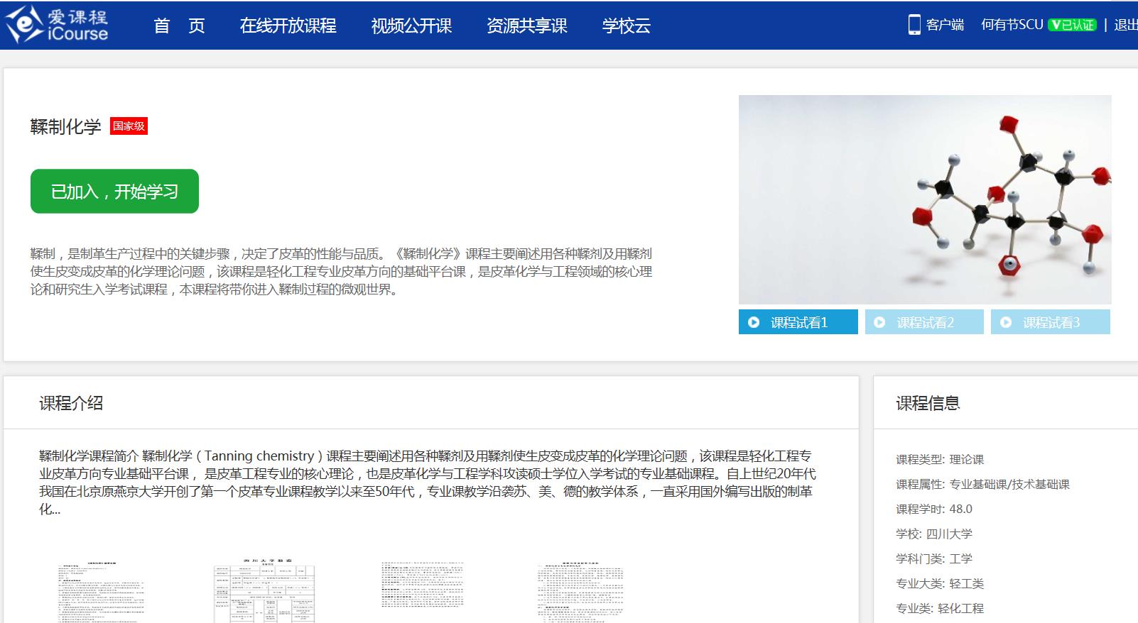 国家级精品资源共享课程和慕课《鞣制化学》在推荐之列