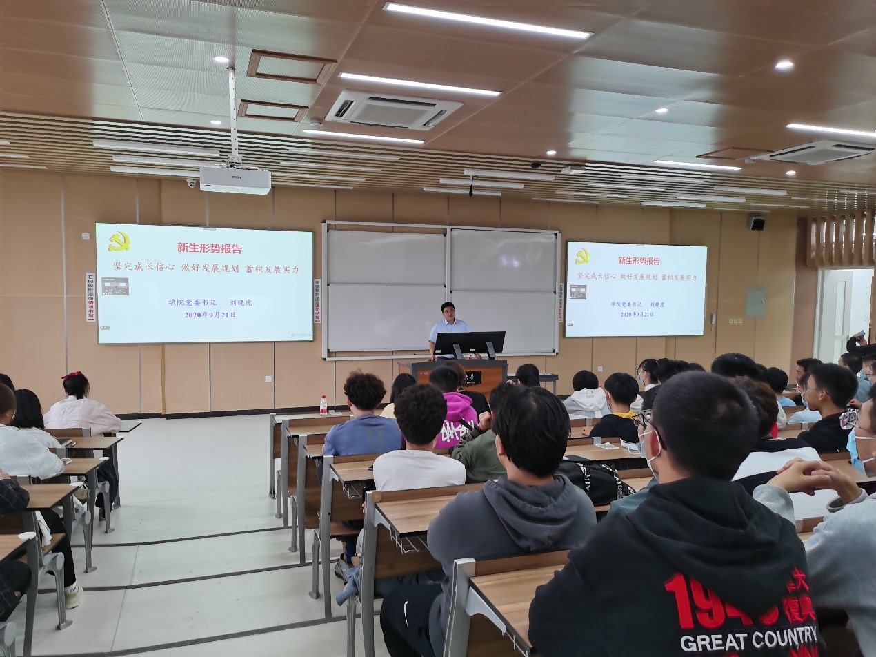 党委书记刘晓虎副教授为2020级全体新生做了主题为“坚定成长信心,做好发展规划,蓄积发展力量”的形势报告。DB游戏