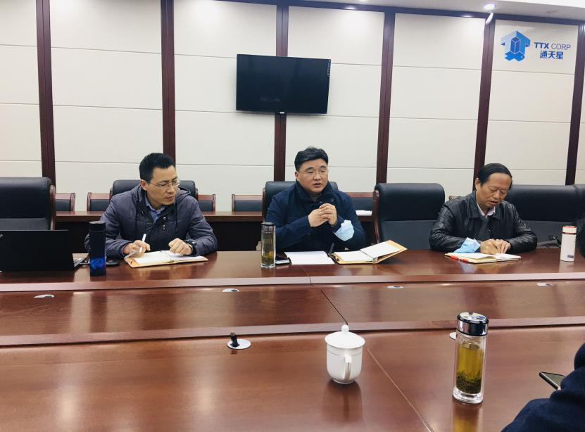 党委书记刘晓虎、院长何有节、党委副书记冯国涛在纺工附楼205会议室参加会议。
