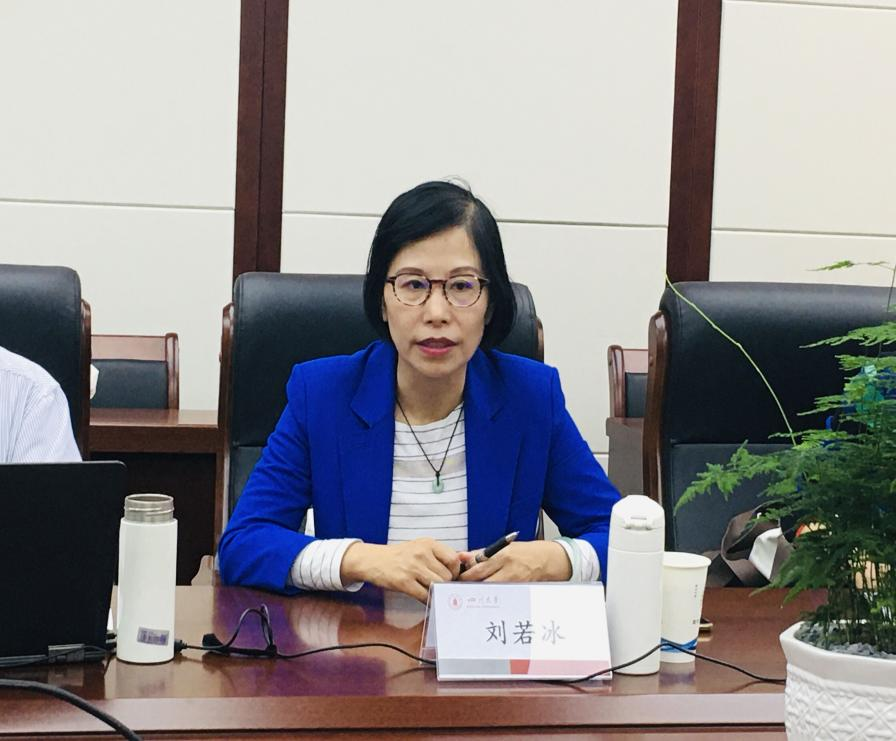 四川大学就业指导中心刘若冰副处长向来访人员介绍了川大学生近年就业情况以及四川大学开展高质量就业的四个引领计划。