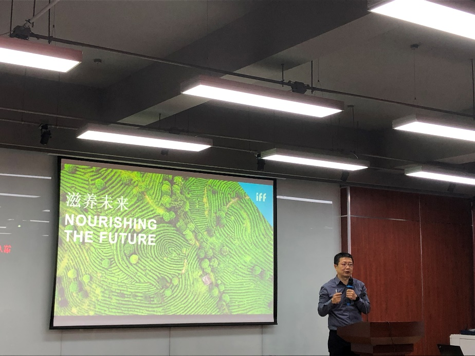IFF营养与生物科技菌种应用专家王德纯先生对IFF企业情况进行介绍。王老师以“滋养未来”作为本次宣讲的主题,从IFF的发展历程、Nourish业务概要、IFF产品组合以及IFF三大创新主题等方面进行了讲述,为师生们传递了IFF的DB游戏以及创新理念。
