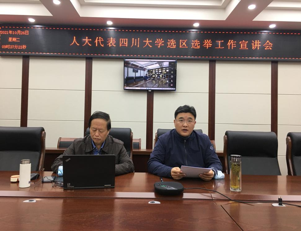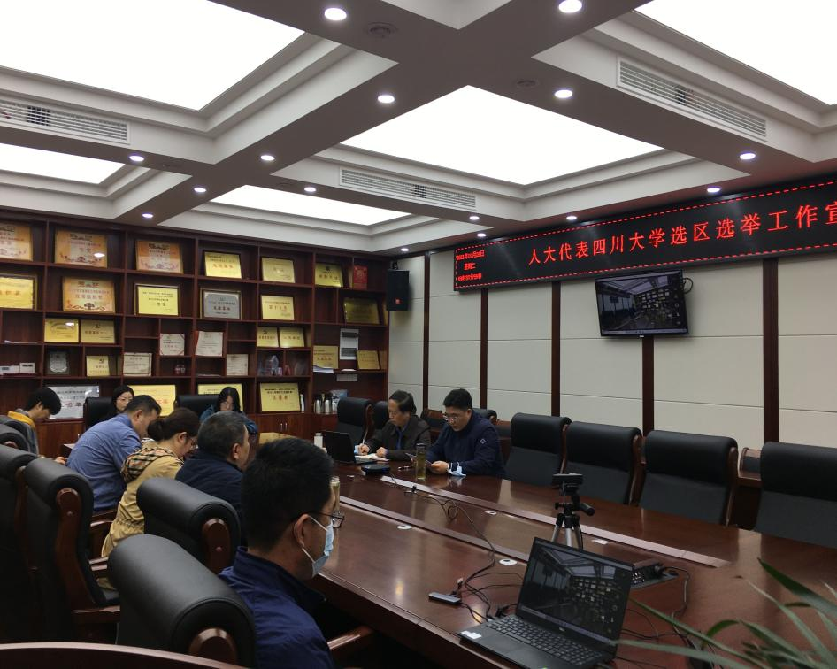 在纺工附楼205会议室举行武侯区第八届和双流区第十九届人大代表四川大学选区选举工作宣讲会。因疫情防控需要,本次会议采取线上线下相结合的方式进行,线下出席本次会议的有DB游戏