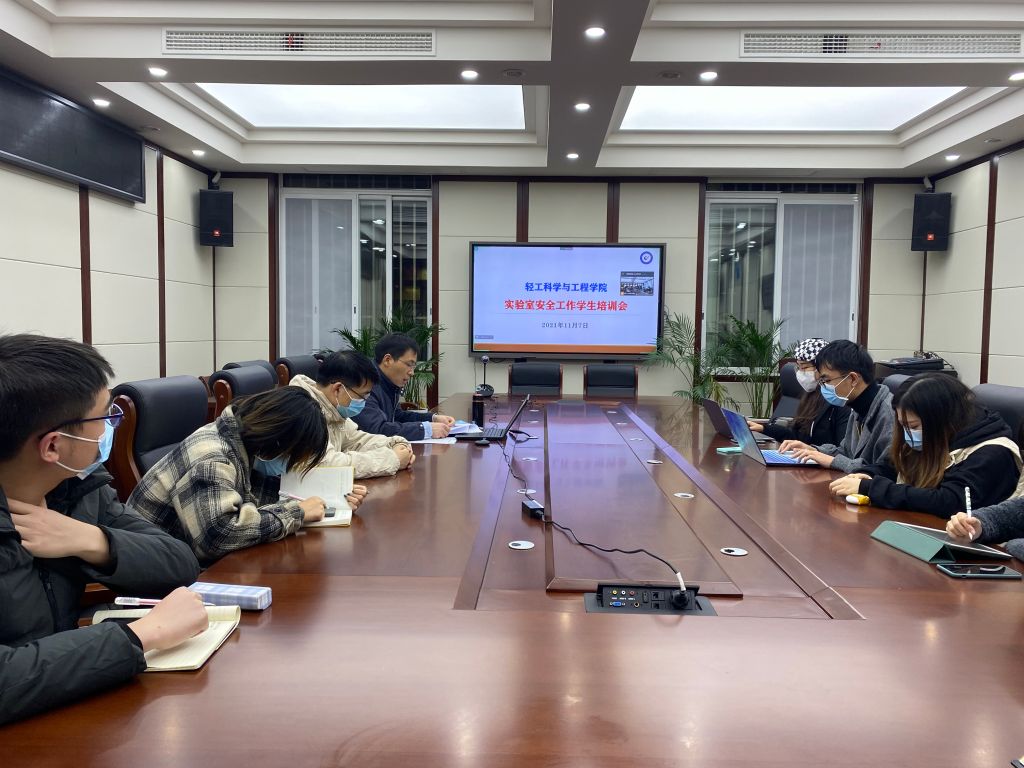 既定工作安排,分管学生工作冯国涛副书记在纺工附楼205会议室以线上线下相结合方式,面向全体学生召开实验室安全学生工作培训会,各年级班长在纺工附楼205会议室参会,其余同学通过腾讯会议参会。冯书记向学生们传达了教育部和校院关于安全工作相的关精神,要求同学们增强安全意识,防微杜渐,保护好自己,也保护好他人。