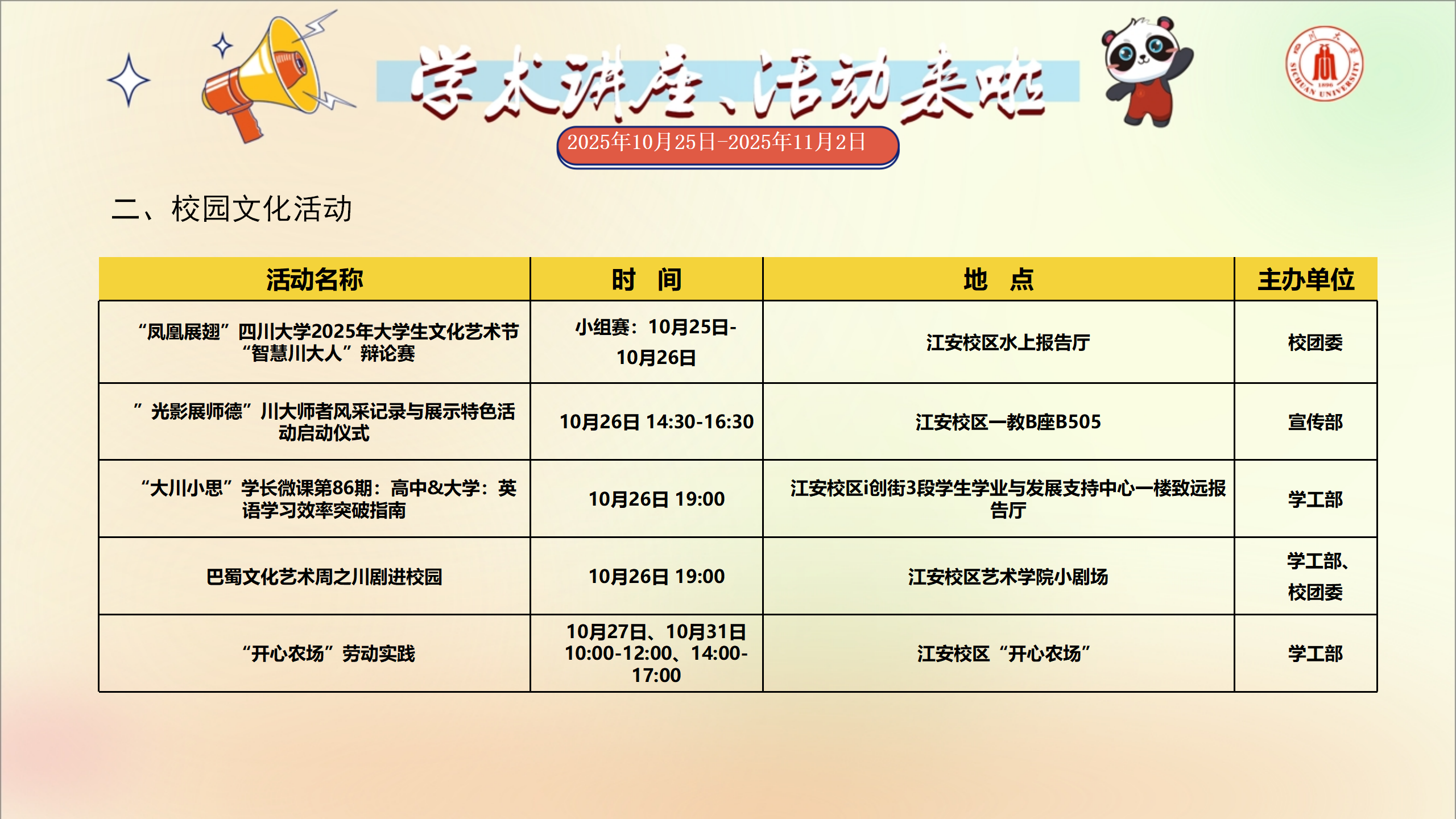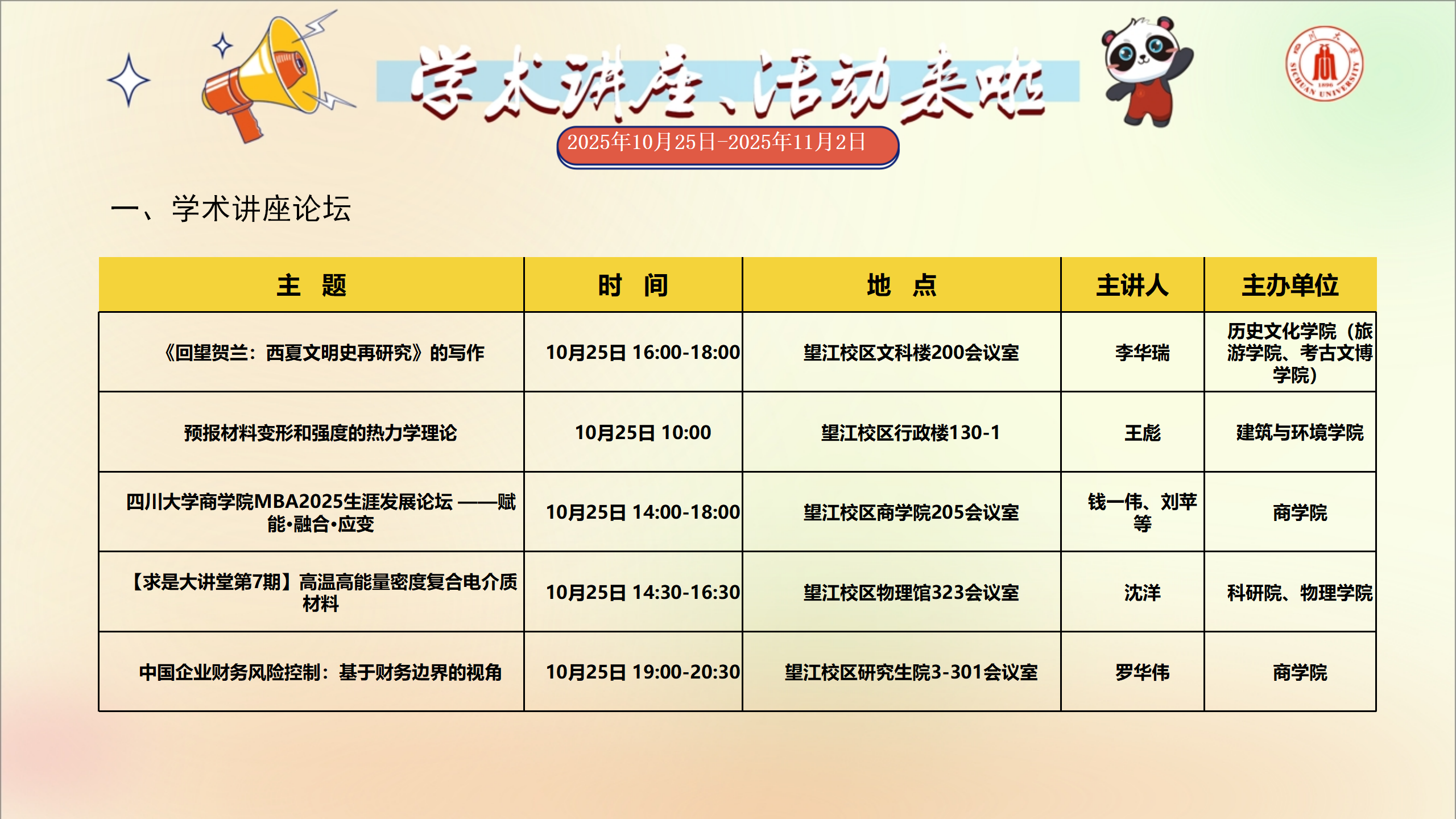 讲座和校园文化活动预告(2025年10月25日-2025年11月2日)